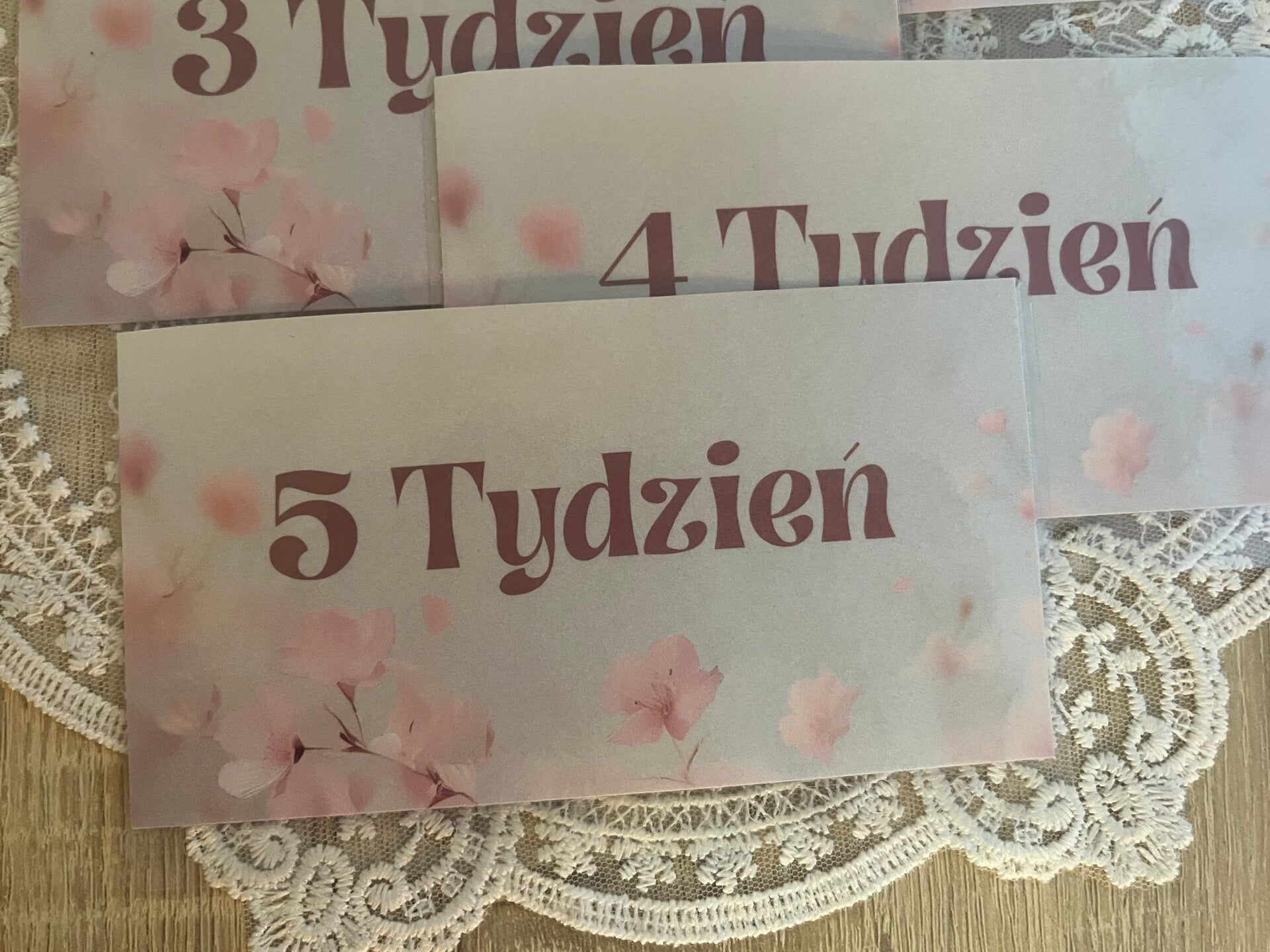 Cena dotyczy zestawu 5 kopert, z napisami "tygodni"